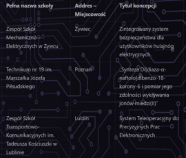 Uczeń naszej szkoły, Jan Michałek z klasy 5A, zgłosił swoją koncepcję pracy badawczej do III edycji programu Inżynierowie Przyszłości Fundacji PGNiG im. Ignacego Łukasiewicza na temat: „Synteza Di[diaza-α-naftolo] dibenzo-18-korony-6 i pomiar jego zdolności wykrywania jonów miedzi(II)” i został zakwalifikowany do kolejnego etapu w tym projekcie. Przyniosło to również wsparcie finansowe na realizację przedstawionej koncepcji badawczej.