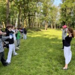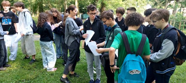 p. Iwoną Ziółkowską oraz p. Pauliną Strzelecką wybrali się na zajęcia przyrodniczo- relaksacyjne w okolice szkoły. Była to okazja do poznania wybranych gatunków drzew, a także do zatrzymania się i złapania oddechu w rytmie natury. Wprowadziliśmy elementy japońskiej praktyki shinrin-yoku, czyli „kąpieli leśnych” – uważnego kontaktu z przyrodą wszystkimi zmysłami. Uczniowie ćwiczyli skupienie na oddechu (technika 4×4), a także proste sekwencje ruchowe inspirowane Tai Chi, sprzyjające harmonii ciała oraz umysłu. Wspólny czas wśród zieleni był okazją do regeneracji i budowania świadomości ekologicznej.