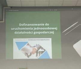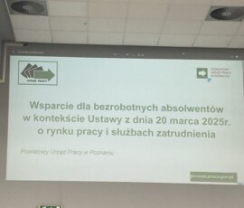 Przedstawiciele Powiatowego Urzędu Pracy w Poznaniu przedstawili wiele niezbędnych informacji dotyczących warunków współpracy z PUP, sposobów skutecznego szukania zatrudnienia, podnoszenia kwalifikacji zawodowych oraz pozyskiwania dofinansowania na różne związane z tym cele.