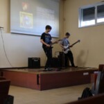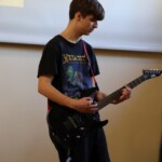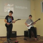 Muzyka na żywo była wykonywana przez dwóch gitarzystów: Bartosza Witczaka z kl. 4A i Jakuba Młodojewskiego z kl. 4B2. Gościem specjalnym był wokalista – p. prof. Tomasz Bieryłło, który na trzeciej przerwie zaprezentował utwór „Paranoid” zespołu Black Sabbath, a w czasie czwartej przerwy zaśpiewał „Jak Malowany Ptak” zespołu Dżem. Oba wykonania zostały nagrodzone gromkimi brawami zgromadzonych w auli uczniów i nauczycieli. Aplauz zyskali także Bartosz i Jakub, którzy zaprezentowali doskonałą technikę gry. Wypełnili aulę mocną muzyką i przyciągnęli wielbicieli tego repertuaru.
