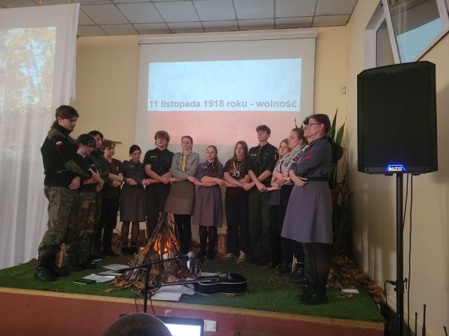 12 listopada 2025 r. w naszej szkole odbyła się uroczysta akademia z okazji 107 Rocznicy Odzyskania przez Polskę Niepodległości. Spotkaliśmy się przy symbolicznym ognisku, aby wspólnie celebrować to święto wolności i suwerenności naszej ojczyzny oraz by przywołać wspomnienia o polskich patriotach, którzy z niezwykłą ofiarnością i oddaniem przez 123 lata niewoli nieustannie dążyli do uwolnienia Polski spod jarzma zaborów.