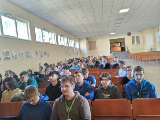 Uczniowie obejrzeli prezentację multimedialną pt. „Zmierzch” Stefana Żeromskiego przygotowaną przez ucznia Kajetana Kurdyka z klasy 2 D.