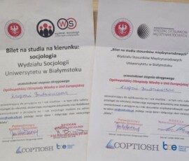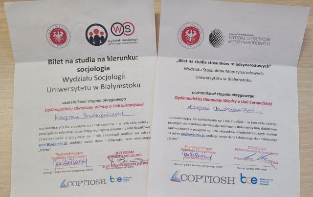 W ramach nagrody Kasper otrzymał również bilety wstępu na studia na kierunkach socjologia oraz stosunki międzynarodowe na Uniwersytecie w Białymstoku, co potwierdza wysoki poziom jego wiedzy i zaangażowania.