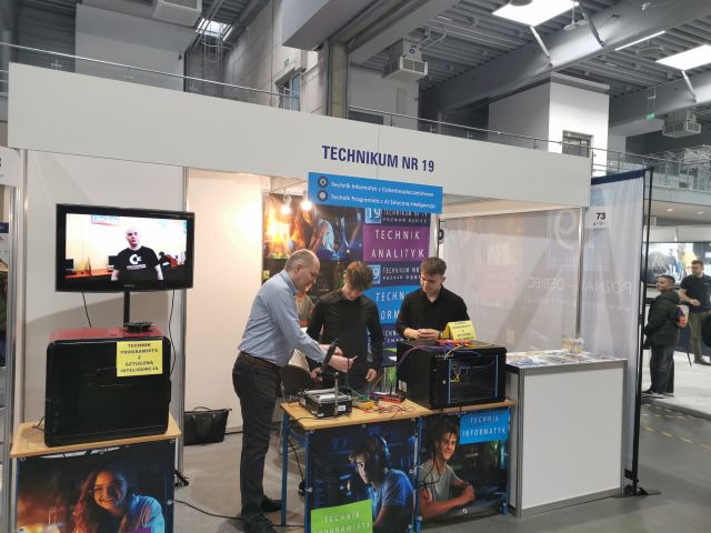 Kolejny raz nasza szkoła miała przyjemność uczestniczyć w Targach Edukacyjnych organizowanych na MTP. Podczas tego wydarzenia promowaliśmy naszą ofertę edukacyjną, rozmawialiśmy z przyszłymi uczniami i ich rodzicami, odpowiadaliśmy na ich pytania oraz pomagaliśmy w podjęciu ważnych decyzji zawodowych, prezentując specyfikę  zawodów: technik analityk, technik programista, technik informatyk, technik programista ze sztuczną inteligencją oraz technik informatyk z cyberbezpieczeństwem.