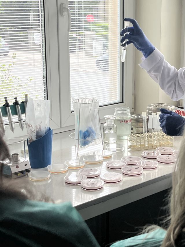 22 maja uczniowie klasy 3A razem z nauczycielkami J. Michalską i M. Brakoniecką odwiedzili laboratoria Wojewódzkiej Stacji Sanitarno-Epidemiologicznej w Poznaniu. W trakcie dwugodzinnego spotkania młodzież została wprowadzona w realia pracy laboratoryjnej związanej z bezpieczeństwem żywności, higieną środowiska oraz oceną warunków pracy. W laboratorium mikrobiologicznym uczniowie poznali metody identyfikacji i hodowli bakterii. Szczególne zainteresowanie wzbudziła prezentacja bakterii wyhodowanych z codziennie dotykanych powierzchni – m.in. z klamek i telefonów komórkowych – oraz porównanie skuteczności mycia rąk samą wodą, wodą z mydłem w porównaniu do niemycia w ogóle. Kolejnym etapem wycieczki były pracownie zajmujące się badaniem żywności pod kątem obecności organizmów modyfikowanych genetycznie (GMO) oraz oceną materiałów mających kontakt z żywnością, ze szczególnym uwzględnieniem substancji potencjalnie szkodliwych. Uczniowie odwiedzili również laboratorium badań środowiska pracy, gdzie zaprezentowano metody monitorowania czynników szkodliwych na stanowiskach pracy.