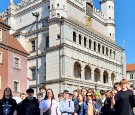 Dnia 17 kwietnia  klasa 1c wraz z wychowawczynią i p. M. Krzyżostaniakiem uczestniczyła w wycieczce integracyjno-rekreacyjnej. Spacer po urokliwych uliczkach starówki, renesansowy ratusz, kolorowe domki budnicze, pręgierz i inne atrakcje miasta były celem naszej wyprawy. Dodatkowych emocji dostarczyła młodzieży gra w kręgle, podczas której uczniowie rywalizowali indywidualnie i zespołowo. Uczyli się zasad gry, przestrzegania reguł oraz radzenia sobie zarówno z wygraną, jak i przegraną.